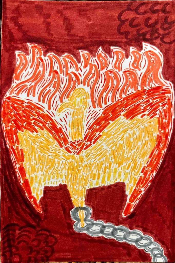 “Phoenix in purple sky”