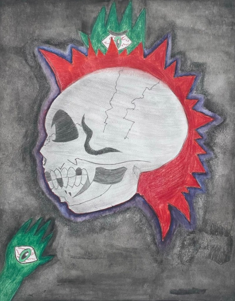 “Punk rock skull and eye hands”